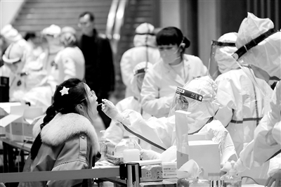 学生们同样投身到疫情防控第一线的工作当中,在临时安置点、核酸检测点都能看到学生志愿者忙碌的身影。复旦江湾疫情防控志愿者微信群刚刚建立,就收到200余名学生的主动报名。研工部招募了研究生党员志愿者250余名,分别在学生生活园区、学生集中居留点、爱久学生公寓、核酸检测点等“上岗”协助。浙大集结了近500名以党员、团员为主的学生志愿者,集中培训后,在各核酸检测点开展信息录入和秩序维护等工作;退役士兵协会的学生毅然冲向核酸检测一线,担起秩序维护的重任。