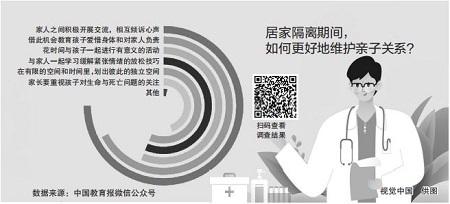 感染病毒康复后,如何更好地维护亲子关系?调查显示,家长们比较认同“家人之间积极开展交流,相互倾诉心声”“借此机会教育孩子爱惜身体并对家人负责”“花时间与孩子一起进行有意义的活动”“划出彼此的独立空间”等。