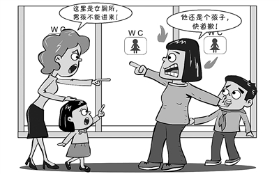 不久前,在黑龙江哈尔滨一地铁站女厕所内,一女子发现有男童站在里面,于是对孩子说:“这里是女厕所,男孩不能进来。”随后,孩子母亲称该女子将孩子凶哭,伤害了孩子心灵,将女子堵住要求道歉,双方在厕所内激烈争吵。这种冲突在各地都时有发生。