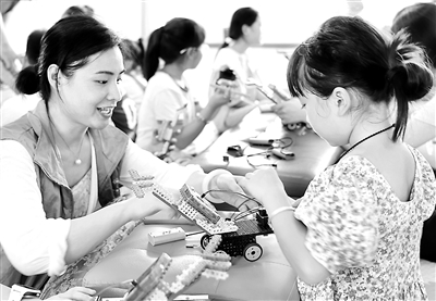日前,在安徽省淮北市烈山区华家湖社区流动儿童服务站,20多名流动儿童参加了“关爱润童心 守护伴成长”暑期流动儿童机器人编程课堂活动。孩子们通过学习人工智能机器人技术原理知识和模型搭建,激发起对科学技术的兴趣,丰富暑期生活。周方玲 摄