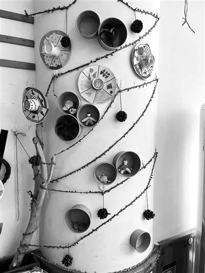 活动过程:根据班级的整体风格、季节特点、幼儿审美和兴趣等,我们决定一起打造一片“小森林”,森林里有各种有趣的小动物,大树上有着独一无二的树叶和神秘的树洞,幼儿可以把自己的喜怒哀乐都分享给树洞爷爷听。如果幼儿不想把秘密告诉其他人,可以单独告诉树洞爷爷,如果想分享,也可以挂在树枝上展示。幼儿可以在需要答疑解惑的秘密上做记号,教师会读取信件并作出回应,帮助幼儿解决难题。我们班的幼儿特别善于发现,也有分享的欲望,我常常看到他们在地上、草丛里发现有趣的东西,并交换小礼物,但是将这些东西存放在哪里成了一个难题。因此,我们在“小森林”里设置了很多开放的树洞,可以存放对孩子们来说有意义的小物件,这些开放树洞也像一个展览厅,让更多的幼儿一起来欣赏。