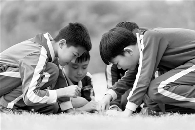 学校组织学生们到野外考察,学生们正在用放大镜进行科学观察。 深圳市龙岗区教育局供图