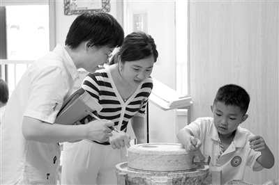 大图:在李渔小学的“创生周”,学生学习制作李渔故居的标志性建筑“且停亭”。