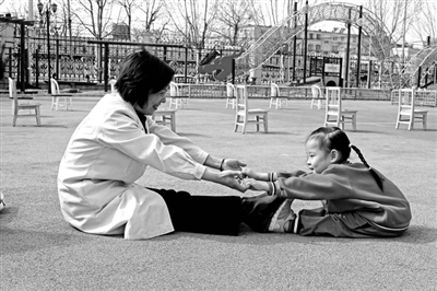 ⑤保健医生带幼儿做运动。赵杰 摄