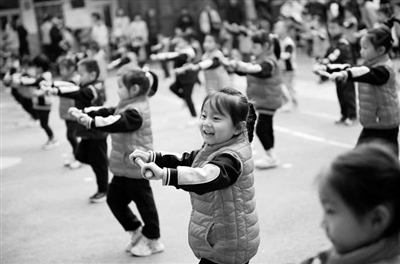 10月24日,河北省邯郸市邯山区实验幼儿园的孩子们在进行“幼儿器械操”展示。当天,邯山区实验幼儿园组织开展“运动悦童心 亲子共成长”主题秋季亲子运动会。周绍宗 摄