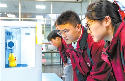 11月17日,江苏省海安中等专业学校学生在教师指导下进行3D打印实训。该校深入推进产教融合和科教融汇,有针对性地开设3D打印、工业机器人应用、数控技术等特色课程,不断提升学生技能水平和实操能力。