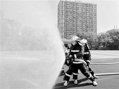 江苏联院中华中专办学点消防救援技术专业学生进行消防车出水操作。本文图片均为学校供图