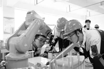 江苏联院常州刘国钧分院工业机器人专业学生进行安装调试实训。本文图片均为学校供图
