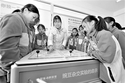 11月25日,学生在流动科技馆体验科技展品。中国流动科技馆湖北省区域襄阳市保康站巡展走进保康县歇马镇小学,让学生们“零距离”学习科技知识,感受科技趣味,接受科普教育。