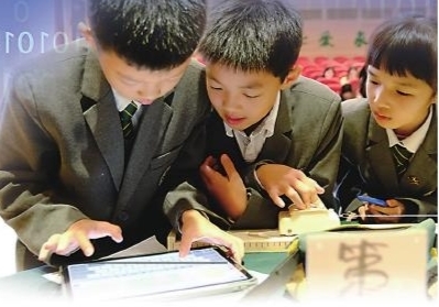 浙江省杭州绿城育华亲亲学校STEM课程中,学生借助人工智能了解各类环保材料性能。学校供图