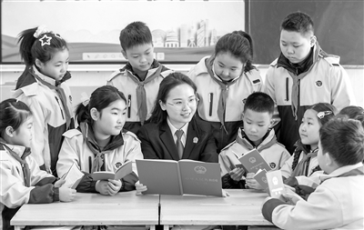 江苏省南通市通州区人民法院法官在通州小学给学生讲解宪法知识。翟慧勇 摄