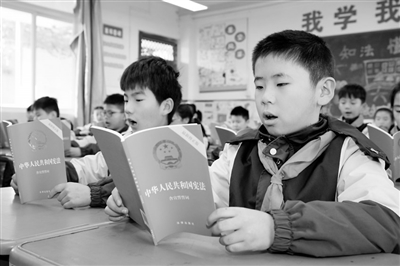 在安徽省合肥市庐阳区五一小学,学生在学习宪法知识。赵明 摄