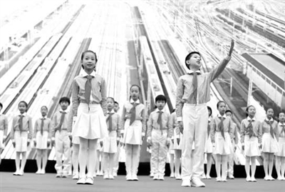 浙江省杭州市求是教育集团的学生们在表演节目。