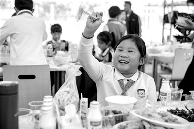 浙江省温州市第二实验小学学生开心地品尝自己烧制的菜肴。通讯员 刘吉利 摄