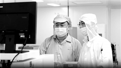 池州学院半导体器件制造与应用微专业学生(右)在车间接受企业导师指导。学校供图