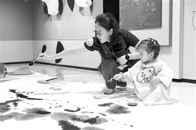 幼儿和家长在美术馆进行水墨画创作。 林岚 供图