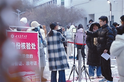 图③ 12月20日,考生在甘肃农业大学考点入口核验身份。本报记者 尹晓军 摄