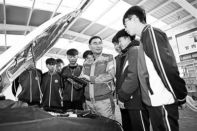 12月23日,在青海省海北藏族自治州职业技术学校,山东援青教师曹强(右四)在指导学生实操。近年来,青海省海北藏族自治州借助山东援青项目和优质教育资源,改善教学硬件设施,引进先进管理和教育教学理念,带动海北州整体办学水平和教学质量不断提升。新华社记者 齐芷玥 摄