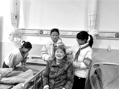 “八小娃”学雷锋小组走进社区医养中心,细心为老人梳理头发、整理床铺,传递温暖与关怀。学校供图