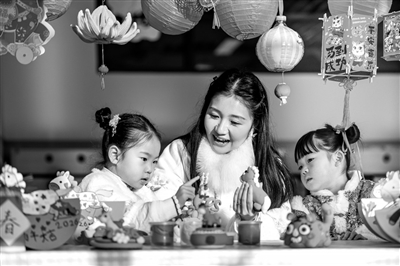 12月29日,安徽省合肥市长江路幼儿园教育集团淮北路分园开展“多彩民俗迎新年”主题活动,孩子在教师指导下,通过制作手工制品迎接新年的到来。赵明 摄