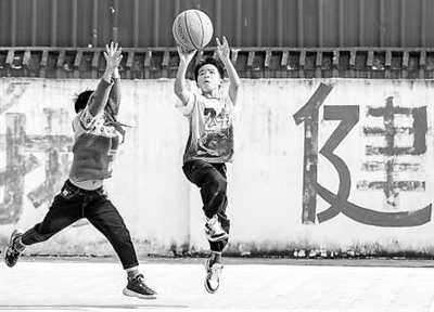 贵州省从江县刚边壮族乡中心小学学生在进行篮球对抗赛。 通讯员 罗京来 摄