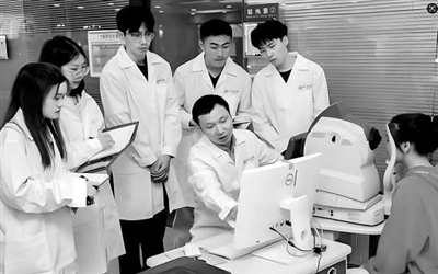 ③ 视觉训练与康复专业教师张敏在合作企业黎明眼镜指导学生分析典型病例。 学校供图