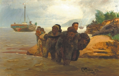 ❷《纤夫涉水》1872年,62厘米×97厘米