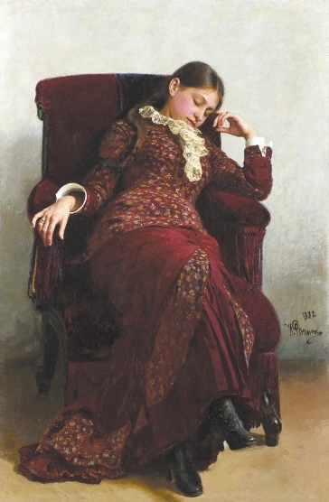 《歇息》展现的是列宾的第一任妻子维拉因操持家务而困倦的画面。列宾以深情的笔触描绘了妻子毫无戒备的放松姿态。画面没有宏大叙事,而是通过生活中真实的瞬间,展现了家庭的温馨与恬静,是艺术家温柔凝视之下的杰作。