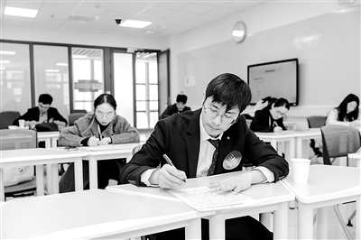 在西南交通大学第十二届青年教师教学竞赛决赛上,参赛选手书写教学反思。 西南交通大学供图
