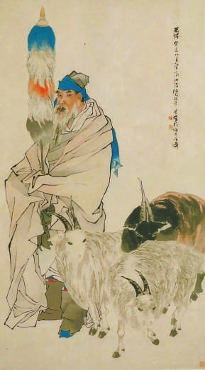 苏武牧羊 任伯年 中国画148.5×83.3cm