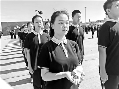 学生伊若锌(前排)迎接太姥爷的战友遗骸回家。 学校供图