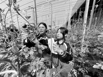 郑州经开区黄店一中的学生在为西瓜修剪枝蔓。资料图片