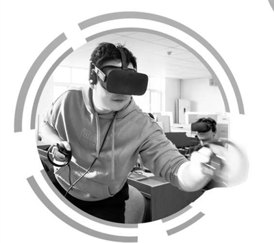 ②北京交通大学学生在轨道交通通信与控制虚拟仿真实验教学中心进行VR实验。 资料图片