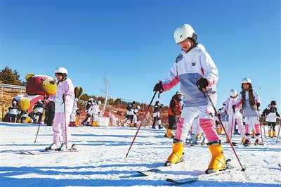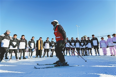 内蒙古自治区鄂尔多斯市,九城宫国际滑雪场,冬日的阳光斜照雪道,泛着细碎的银光。“减速时,雪板呈‘内八’,脚尖向内,膝盖下压……”学生们低声重复动作要领,试探挪动脚下的雪板,在教练的引导下开始缓缓向前滑行。