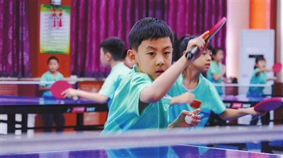 今年读二年级的刘浩然,接触乒乓球已有一年多时间,他告诉记者:“刚开始,我觉得好难。”经过不断训练,他慢慢适应,并逐渐爱上了乒乓球。“季老师带着我们一遍遍地练习、纠正动作,一上午的时间不知不觉就过去了。”
