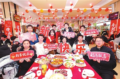 2月11日,华中科技大学组织师生吃新春团年饭。迎春会、写春联、包饺子……新春将至,多所高校为寒假留校师生组织精彩活动,准备丰盛的团年饭,送上诚挚祝福。新华社发