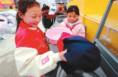 雷波县箐口乡中心校的学生们学习使用洗衣机洗涤衣物。该校正在试点寄宿制学校规范化管理,洗衣机由四川省教育融媒体中心捐赠。