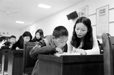 ②商林乡伴学点大学生志愿者陪伴孩子学习。李志强 摄