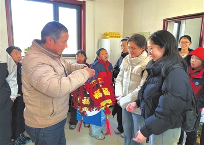 ③河北师范大学学生走进骆驼湾村村民家送上新春祝福。杨辉 摄