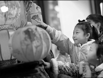 学生在杭州西湖郭庄参观浙黔学生共绘的彩灯。刘静 摄