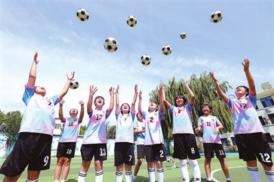 河北省唐山市丰润区西实验小学女足队员在训练中。朱大勇 摄(资料图片)