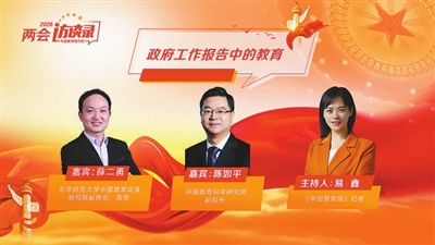 3月5日,中国教育科学研究院副院长陈如平,北京师范大学中国教育政策研究院副院长薛二勇做客中国教育报刊社“两会访谈录”。