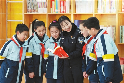 新学期初始,重庆师范大学附属实验小学校法治副校长在校园对学生进行法治宣传。学校供图