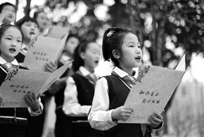 重庆市融汇沙坪坝小学举办“我和春天有个约会”主题实践活动,学生们在朗诵朱自清的《春》。 孙凯芳 摄