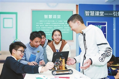 安徽省合肥七中高一年级学生在机器人教室自主学习研究课程。 学校供图