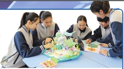 山东省青岛市崂山区麦岛中学学生利用数智工具进行海洋项目化学习研讨。 学校供图