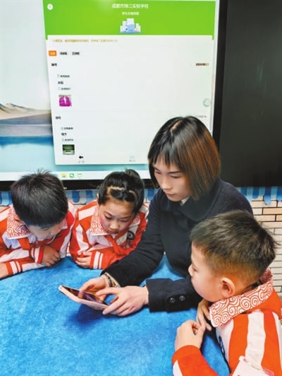 四川省成都市锦江实验学校教师与学生使用小程序查询失物。 学校供图