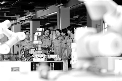 据介绍,学校专业群瞄准天津市高端装备制造产业链,与企业联合打造了包括豪迈制造天职工厂、智能制造数字化产线、机器人调试检测中心、先进控制技术应用中心、机械加工实训中心、增材制造技术推广中心在内的“一厂一线四中心”。围绕新设备、新技术,开设了机电设备故障诊断与维修、智能感知应用技术等多门实训课程。