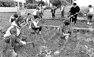 ②湖南省邵阳市洞口县文昌街道第二小学学生在菜地劳作。 滕治中 摄