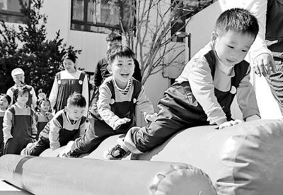 近日,河北省邯郸市经开区第二幼儿园开展“马年添马力 健康有活力”春季亲子主题运动会,孩子和家长在相互配合中享受亲子运动带来的快乐。 周绍宗 摄